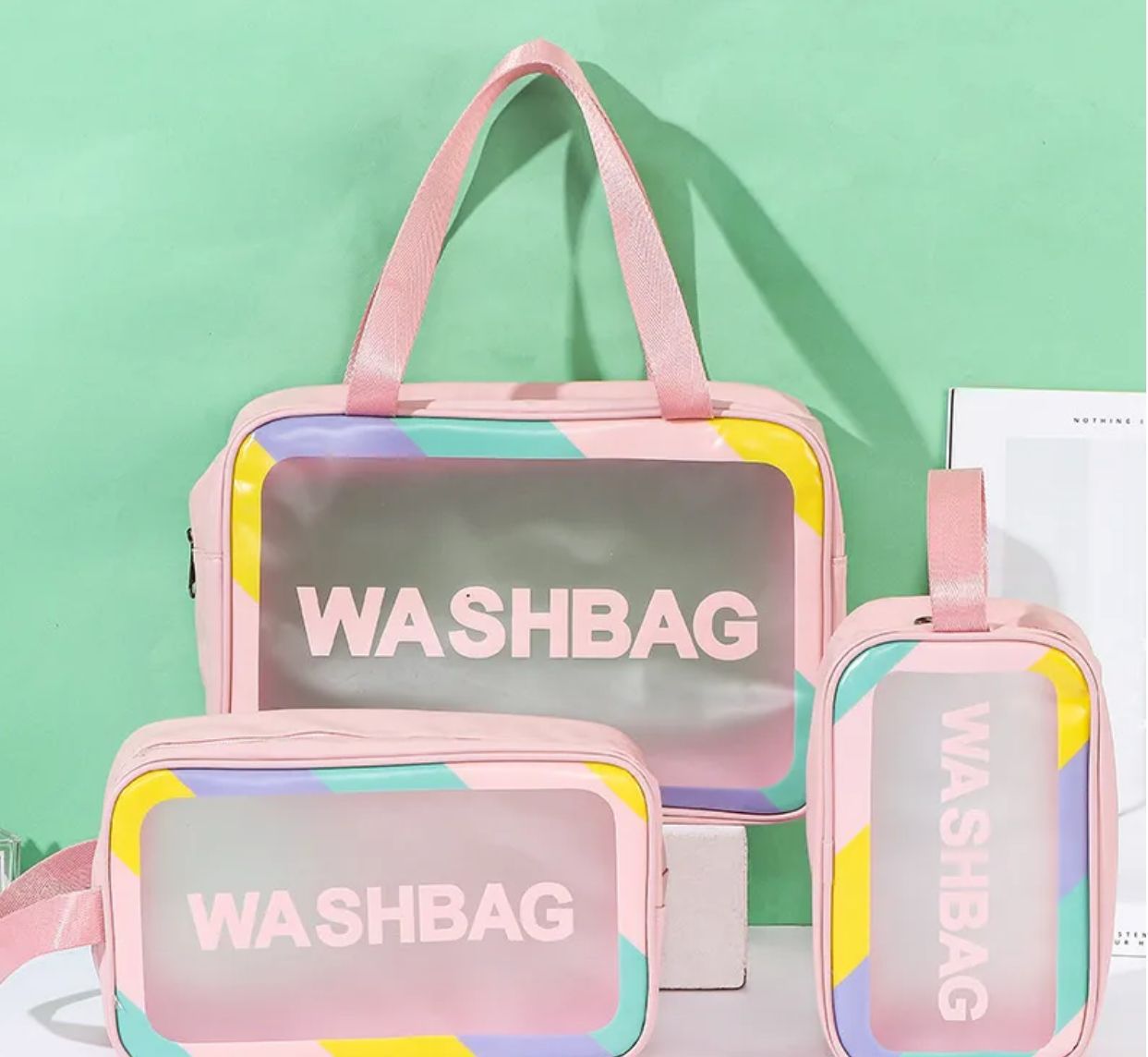 Bolsa de cosméticos de PVC transparente, portátil, de gran capacidad, sencilla y resistente al agua para mujer.
